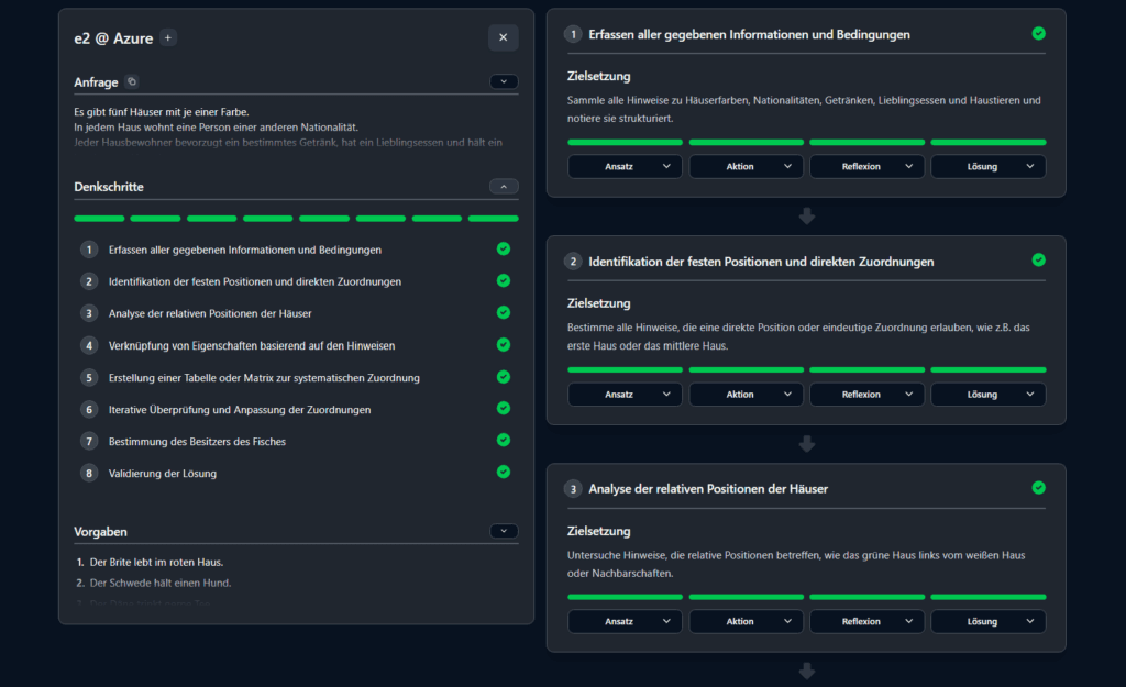 Sie können einzelne Aufgaben in unsere WebUI eingeben, um Entscheidungsabläufe anzustoßen und erhalten Einblick in alle Schlussfolgerungen und Gedankengänge.